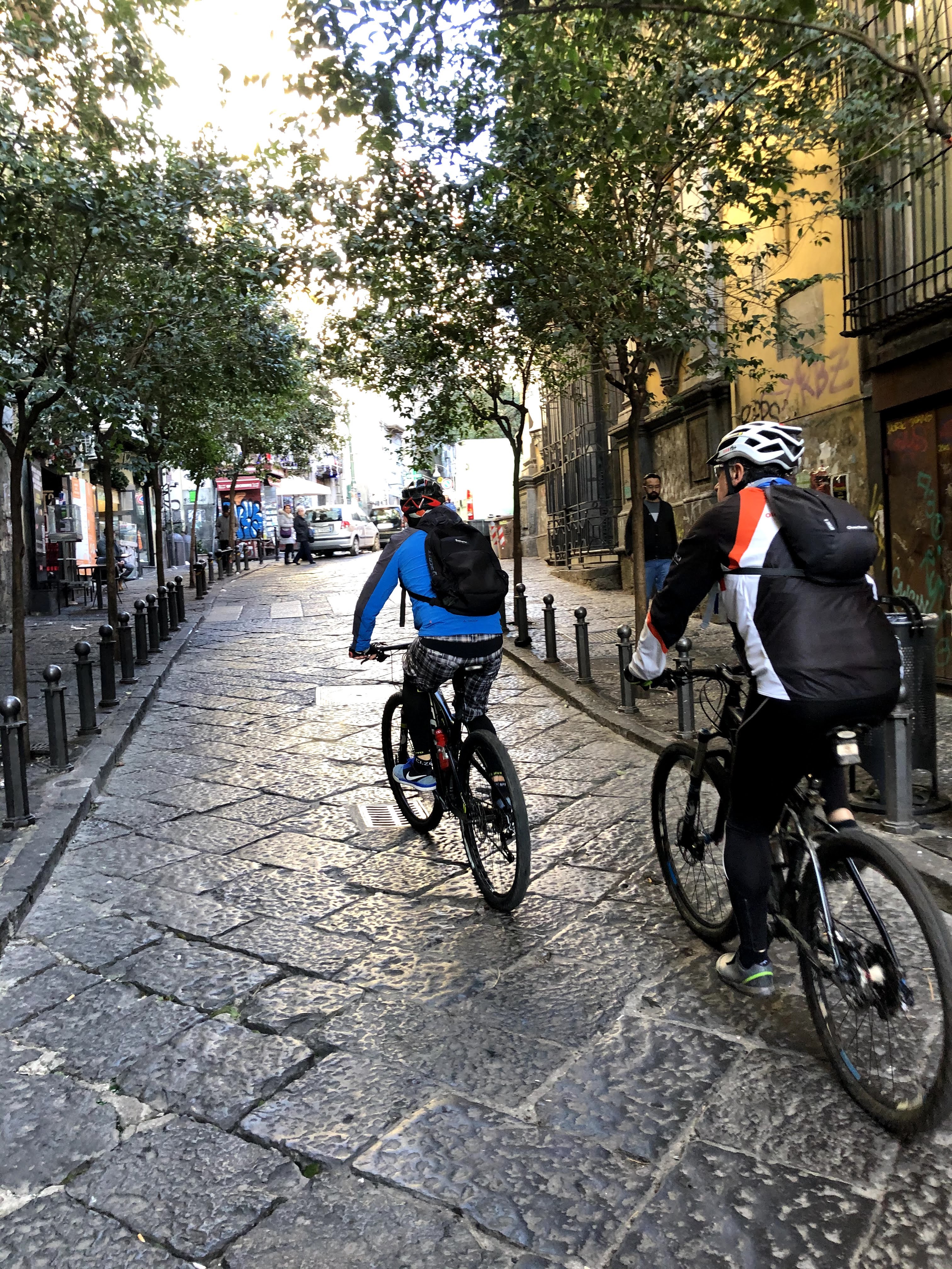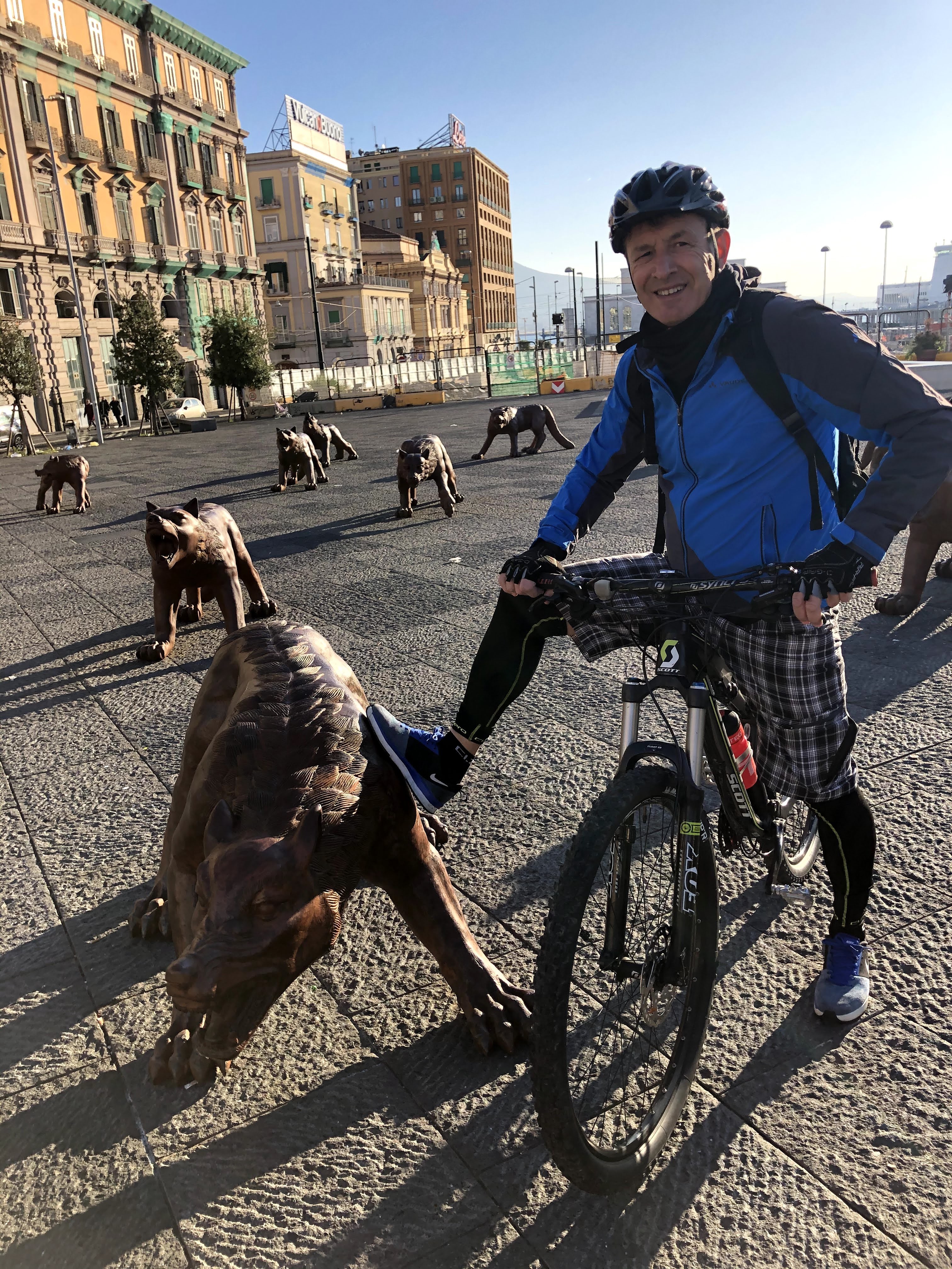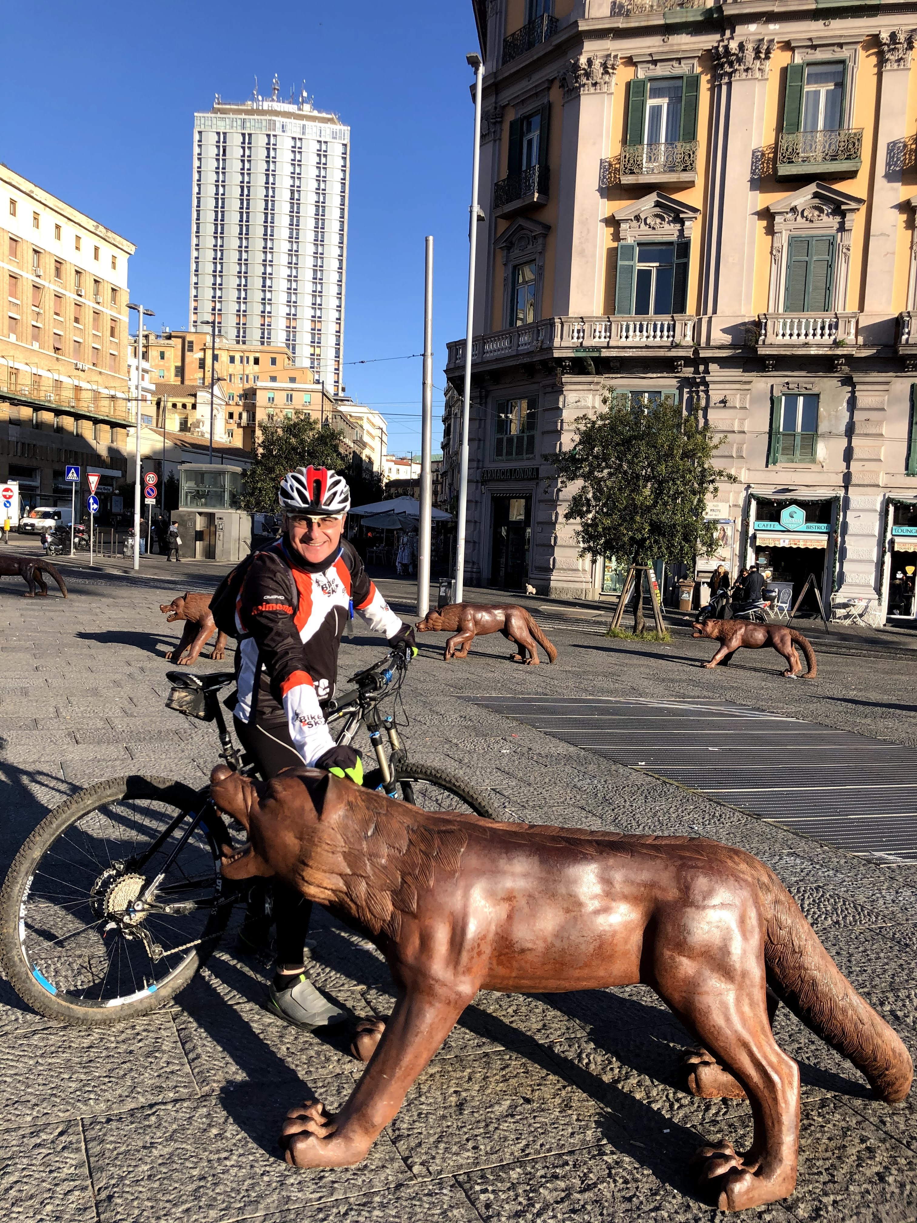 Il giro è cittadino ma decidiamo di mantenere un ritmo sostenuto: dopo esserci ritrovati a Piazza del Plebiscito e consumato un ottimo caffè alla nocciola del Professore, decidiamo di puntare ai lupi di piazza Municipio per poi entrare nella Napoli greca fino al cuore del rione Sanità, da qui saliamo fino alla reggia di Capodimonte.