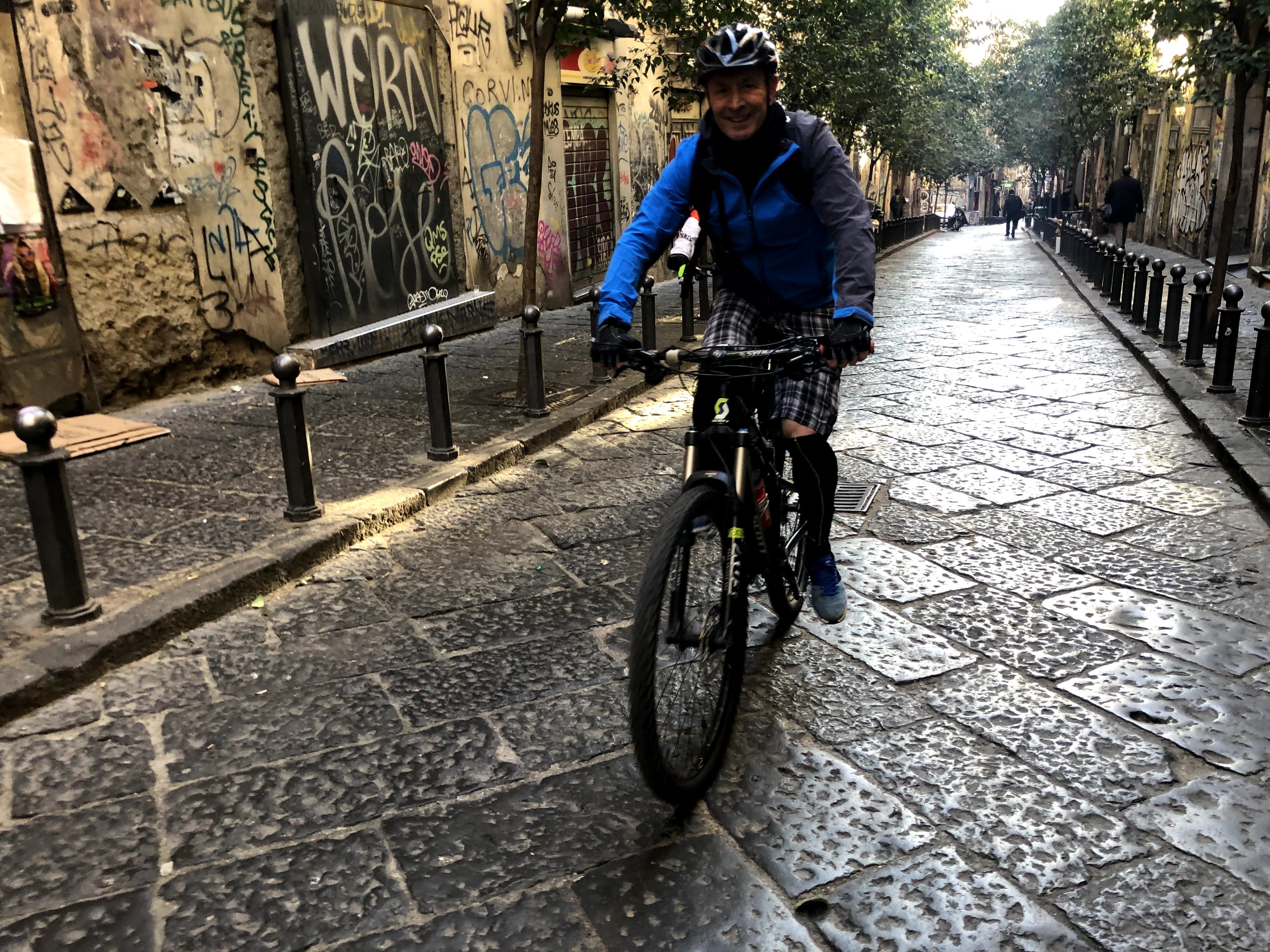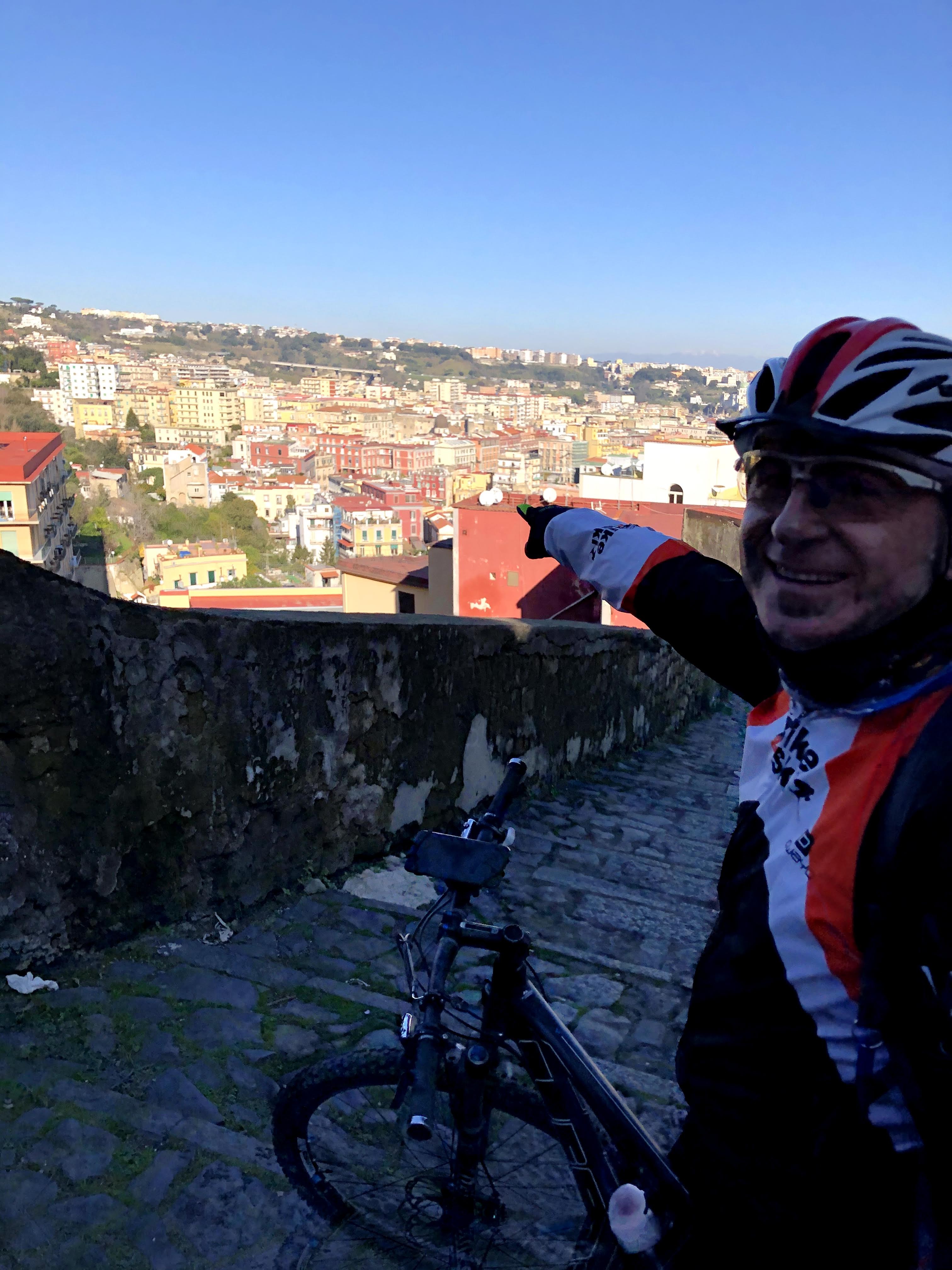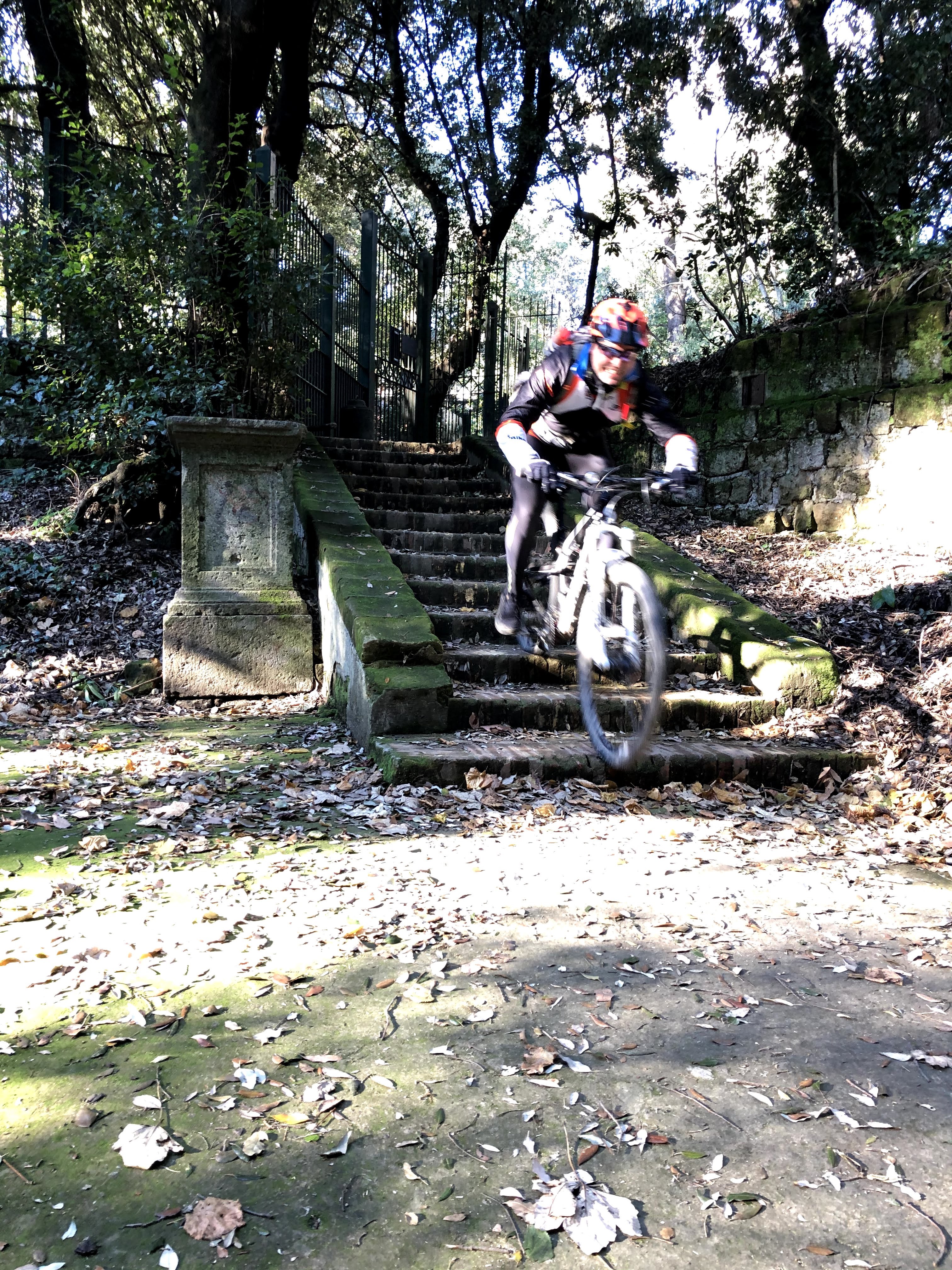Contrariamente a quanto letto sui social (mai fidarsi), il parco è ancora in gran parte chiuso per manutenzione. Riusciamo comunque a fare un po' di sterrato ed a lanciarci in salto su una ripida rampa di scale. Usciti dal parco, seguiamo Raimondo che attraverso strade secondarie ci porta in zona ospedaliera, poi giù al Vomero ed infine su fino San Martino.