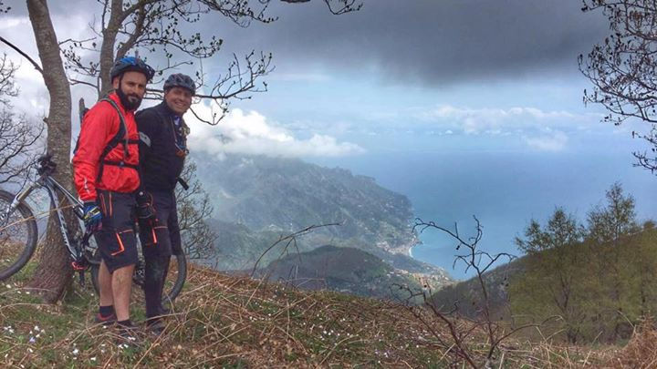 Lasciamo una prima auto a Vietri e torniamo con la seconda a Gragnano, dove allestiamo il campo base in località Casola-Oliveto. Montate le bike ci confrontiamo subito con i 22 tornanti infernali del monte Megano. La salita è molto faticosa su un fondo di sassi e terreno. Alla fine dei tornanti, la salita continua fino alla vetta del monte Mègano (con l'accento sulla e): vista incantevole delle costa amalfitana. Inizia un lunga discesa, con qualche strappetto in salita. Bella caduta di Alfonso sui sassi che deforma la ruota posteriore, ma è in grado di continuare. Si scende sino ad Agerola dove Gianni percorre una lunga scalinata in grande scioltezza. Dopo un veloce spuntino (Panino con vero fiordilatte di Agerola!!!) scendiamo sino ad Amalfi. Il tempo si mette sul brutto. Inizia a piovere sul "muro" di Cetara e all'auto a Vietri arriviamo completamente zuppi e distrutti, ma soddisfati per un'altra avventura epica. (Distanza: 52,6 Km, 1336m D+, Traccia) (Video) (back) Score B&S: 216 pts