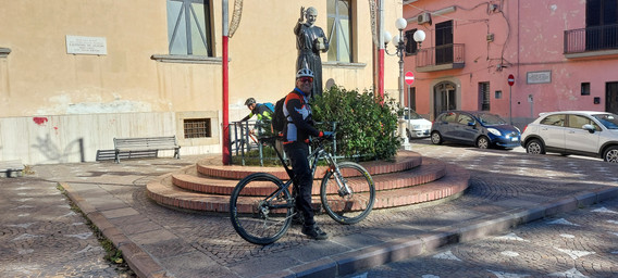 Al chilometro 12 siamo nuovamente su asfalto. In leggera salita procediamo in direzione di Bracigliano. Breve sosta davanti ad una bella chiesa ed un palazzo aragonese, che ospitò alcune lezioni del celebre sant'Alfonso Maria de Liguori, dottore della Chiesa. L'omonimo Direttore non può non farmi immortalare con il suo amato Santo protettore.