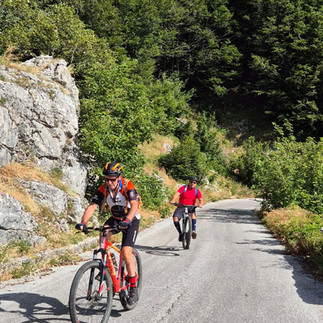 Valutiamo l’orario. Siamo in ritardo di circa 45 minuti rispetto al programma di Alfonso (per la funicolare persa) e per il nuovo trail dopo lo Chalet. Raimondo caldeggia un cambio, che prevede di non scendere a Summonte e San Giovanni e poi risalire, ma di salire subito verso Campo Maggiore. Roberto si oppone. Il Presidente è pieno di energie (e bici elettrica o come ribattezzata da Alfonso, "muscolare appesantita") e vuole completare il tracciato iniziale. Gli altri non si schierano ed attendono la decisione. Come sempre alla fine la mediazione viene trovata. Ovvero il piano viene rivisto con salita verso Campo Maggiore, ma qui effettueremo dei loop in sentieri secondari, per mantenere la lunghezza totale del tracciato. Tutti contenti riprendiamo la salita.