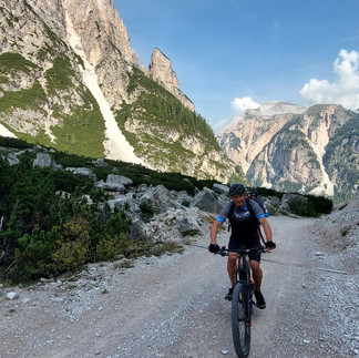 Lucia è raggiante e il suo stomaco si è ora riaperto e si fionda su dei canederli. Per tutti un pranzo frugale (uova patate e speck e/o canederli) e poi si riparte. È da sottolineare come questo rifugio, il Gran Fanes, oggi luogo di felice ricongiungimento, fu teatro invece di un abbandono nel lontano 2018, in un epico bike tour, dove Roberto, Generoso (mitico primo presidente e padre delle novelle bikers Monica e Lucia) e Nicola, consumarono un lauto pasto e non aspettarono gli affaticati Alfonso e Raimondo, abbandonandoli ad un infausto destino (link al blog del 2018).