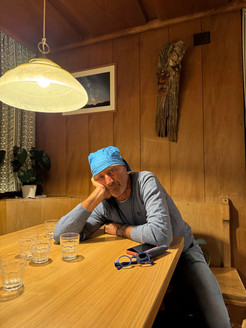 Sveglia di buon mattino e colazione prevista alle 7.30. Roberto ed Alfonso, i più mattinieri, sono già pronti alle 7.15 ed attendono l’apertura della sala. Qui scambiano due parole con altri due bikers, in giro per le montagne in gravel unsupported (ovvero bici ibrida road/mtb, muscolare e zaino in spalla con tutto l’occorrente per il loro giro di oltre 400km in 3 gg). Noi raccontiamo loro del nostro giro su sterrato, ma ci guardiamo bene dallo specificare che prenderemo delle e-bike. Alle 7.30 (trattabili per qualcuno) siamo tutti giù nella fiammante nova divisa, in stile "carbon", pronti per il primo pasto dell'atleta.