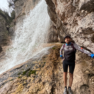 Con la prime gocce di pioggia, lasciamo il rifugio e ci lanciamo in una bellissima e lunghissima discesa verso Fiames e Cortina d’Ampezzo. Qui annoveriamo una caduta di Chiara che non contenta cade di nuovo con nuova e più profonda sbucciatura del ginocchio destro (10+10, sorry). Alfonso inaugura il nuovo kit medico e presta le prime cure alla sempre sorridente Chiara. Ci raggruppiamo e ci fermiamo per una variante trekking alla via ferrata della cascata di Fanes. Emilio ed Alfonso si rifiutano (vertigini su sentiero esposto), mentre tutti gli altri scendono nel budello oscuro. Roby torna per primo con volto da fantasma per la fatica/spavento e fa morire di paura Alfonso che teme che qualcuno sia precipitato (10 punti a Roberto, per procurato allarme). Poi ci rimettiamo in sella e scendiamo sotto la pioggia battente fino a Fiames, senza ulteriori intoppi.