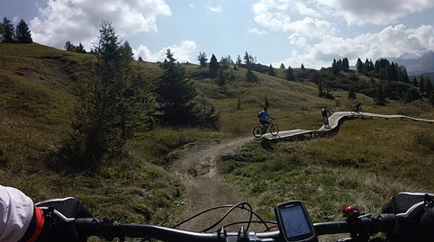 L'ultima parte del giro prevede l'Icarus Trail, poi un trasferimento su un sentiero stretto tra le rocce e poi il single track Grand Paradiso ed i due trail in alternativa Easy Jump (Raimondo) e Family Line (tutti gli altri).