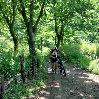 Arriviamo ad un bivio, dove un grossa freccia rossa indica il sentiero a destra, in forte salita. Quando Alfonso arriva al bivio, è solo. Santino e Fabio sono fuori portata visiva ed uditiva. Raimondo è alle spalle, 300 metri indietro. Il direttore tecnico del gruppo da un'occhiata al Garmin e non è sicuro al 100% che il sentiero a destra sia quello giusto. In effetti i due sentieri partono paralleli e quindi occorrerebbe un minimo di perlustrazione prima di decidere. Prova ad urlare, per richiamare Fabio e Santino. Niente, nessuna risposta. Sopraggiunge Raimondo. Tralasciando gli epiteti rivolti al povero Alfonso, anche lui teme che i due battistrada abbiamo imboccato il sentiero a destra. Ogni dubbio è poi fugato perché di lì a poco scende dal sentiero di destra un grosso trattore ed il conducente conferma di aver incrociato altri due ciclisti poco prima.