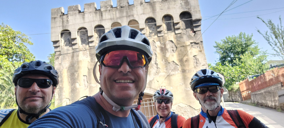 Ma prima della discesa finale ci tocca l'ennesimo strappo in salita, superato il quale decidiamo di fermarci e gustare l'ottimo casatiello portato dal sempre premuroso Raimondo. Ottimo il casatiello, Raimondo la prossima volta si impegnerà a portare anche qualche birra.