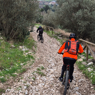 Arrivati al bivio per lo sterrato, decidiamo di fare una piccola deviazione per raggiungere un bar ai piedi del borgo medioevale di Caserta Vecchia. Dopo il caffè torniamo sui nostri passi e salutato Nic. Al grindo "Fulmini e saette", ci inerpichiamo nel ripidissimo sentiero sulla destra.