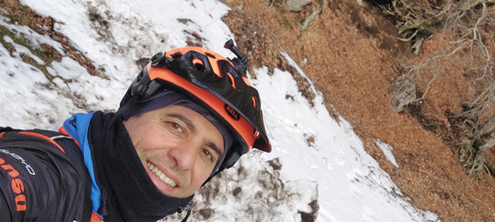 Ci lanciamo quindi sullo sterrato. La neve lascia progressivamente spazio prima al fango e poi alle pietre. Le velocità aumentano. Ovviamente chi dice fango dice tormento per Mario, che armato di rametti inizia la sua guerra personale, cercando di rimuovere l'immonda melma dalla sua fiammante bike. Arrivati al bivio per bosco Cupone, decidiamo di proseguire diritto e percorrere il trail "panoramica", un lunghissimo sentiero che taglia tutto il versante da nord ovest a sud est, fino ad arrivare alla provinciale tra Montevergine e Mercogliano. Questo sentiero, che alcuni mesi fa era in pessime condizioni, si rivela pulito e piacevolissimo e come al solito riserva scorci mozzafiato.