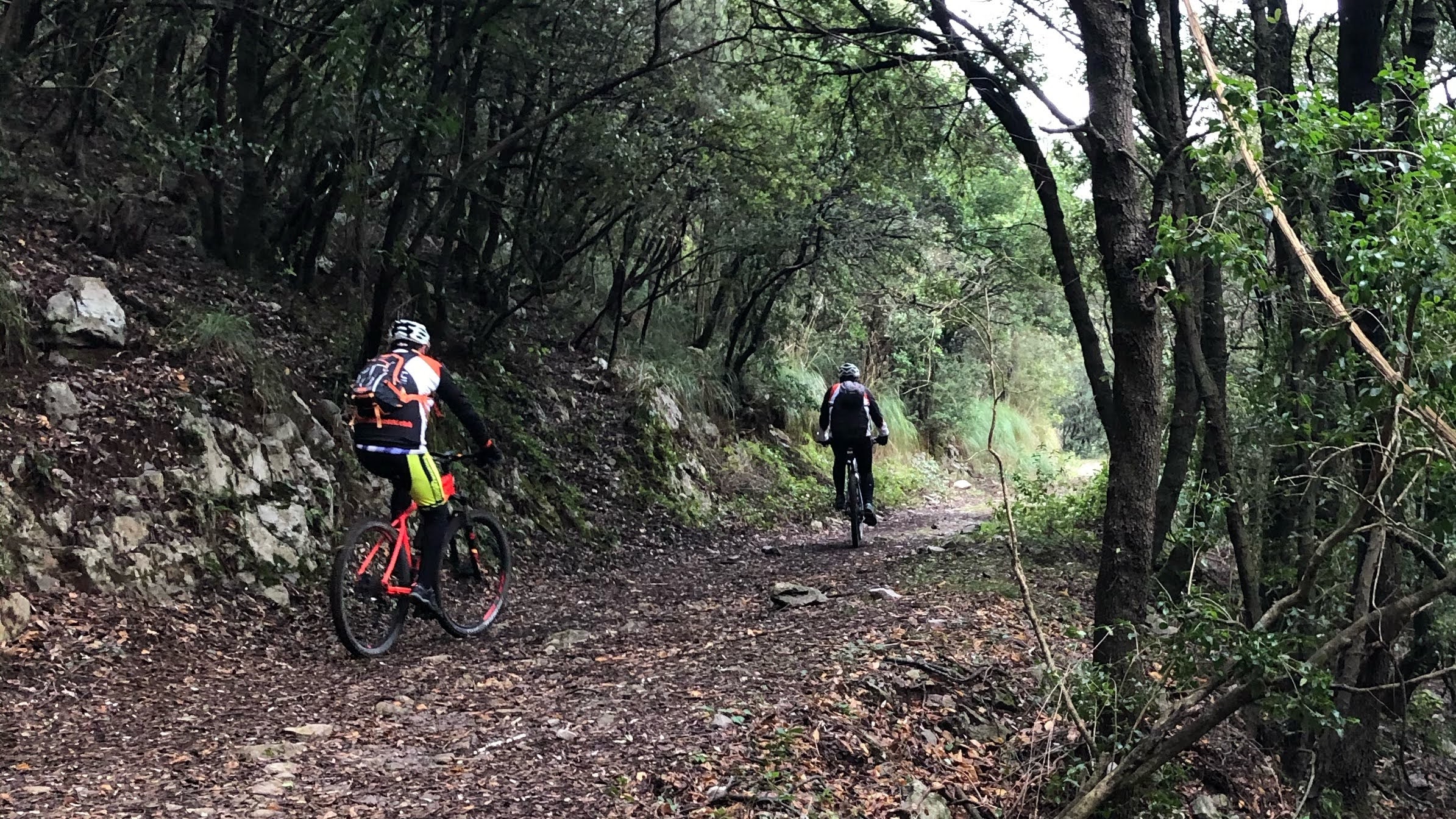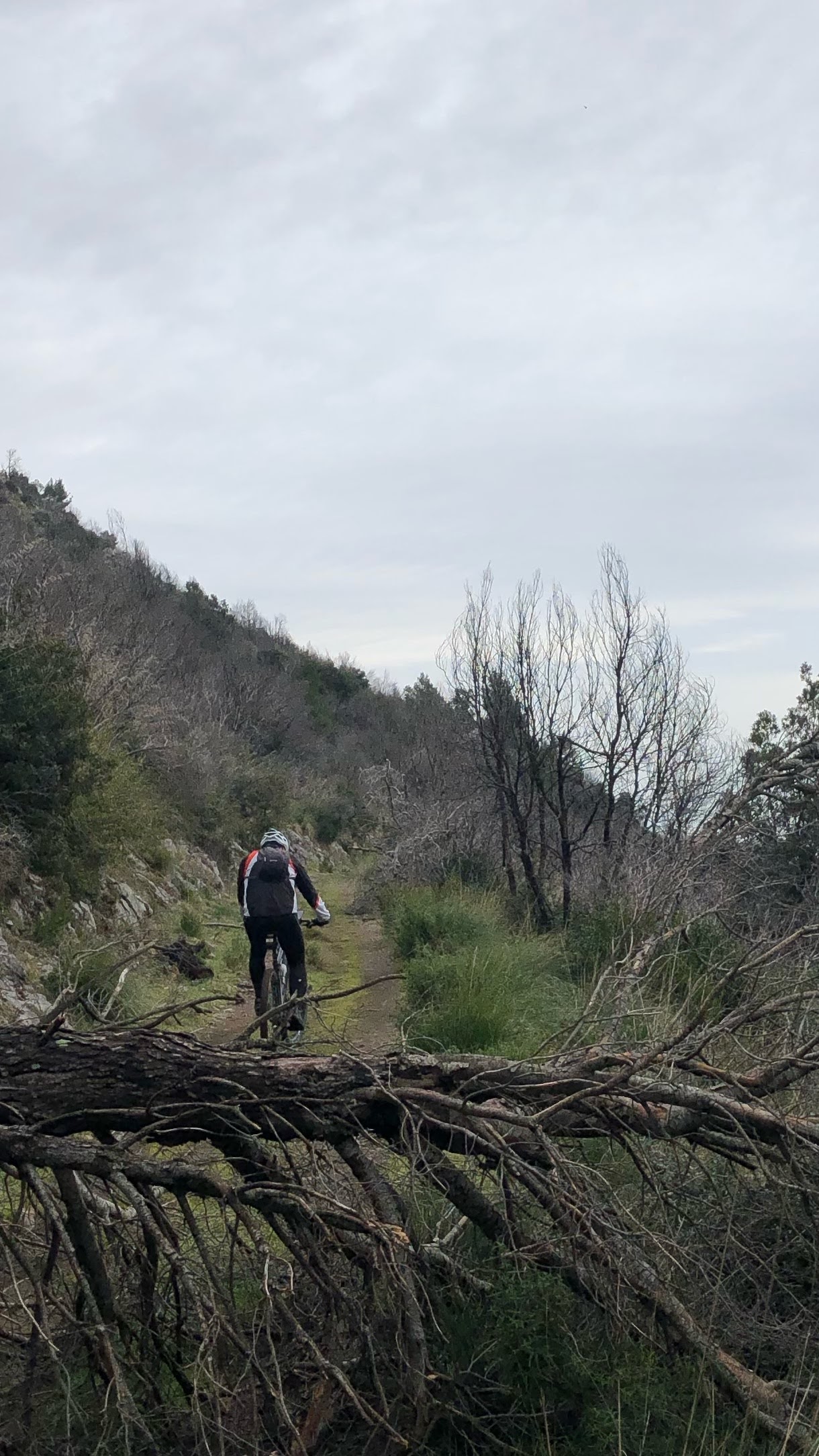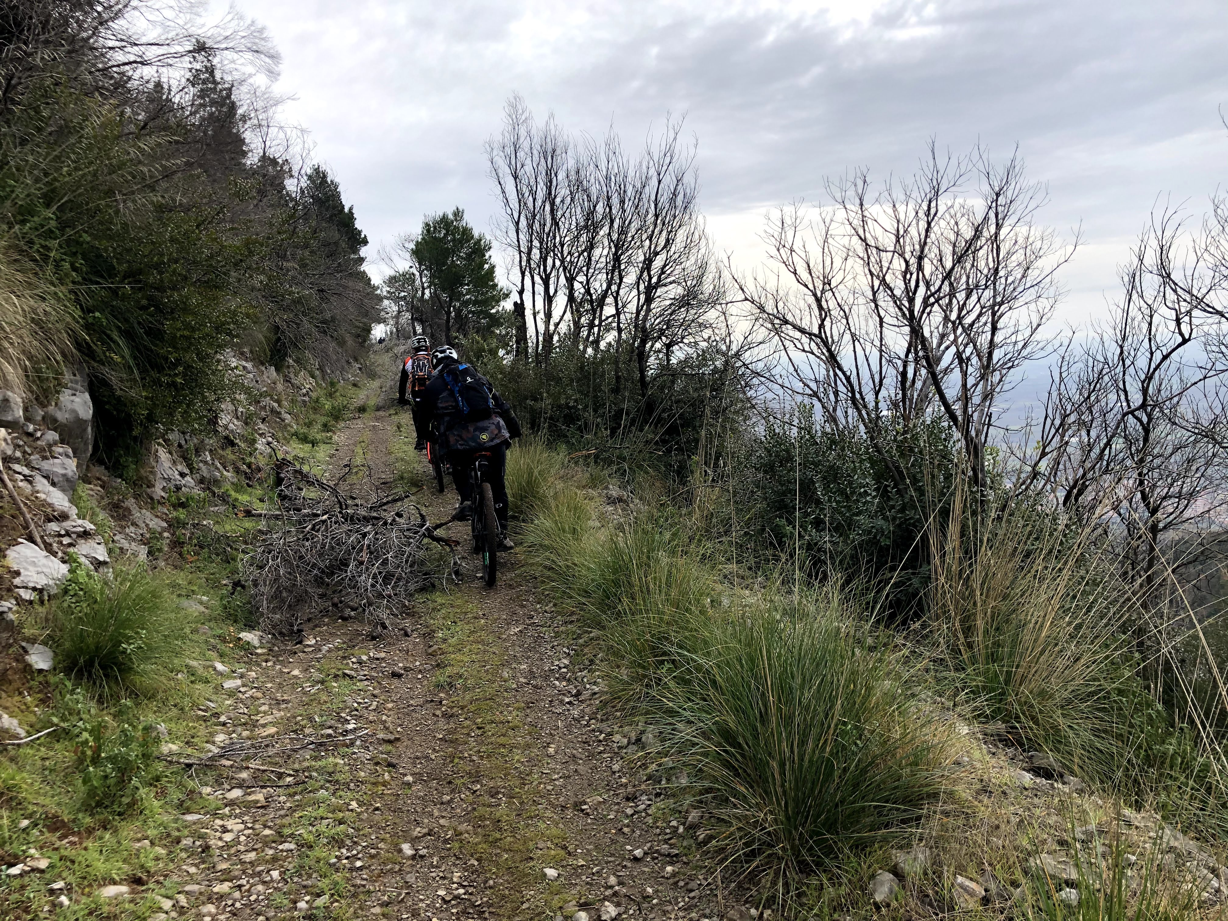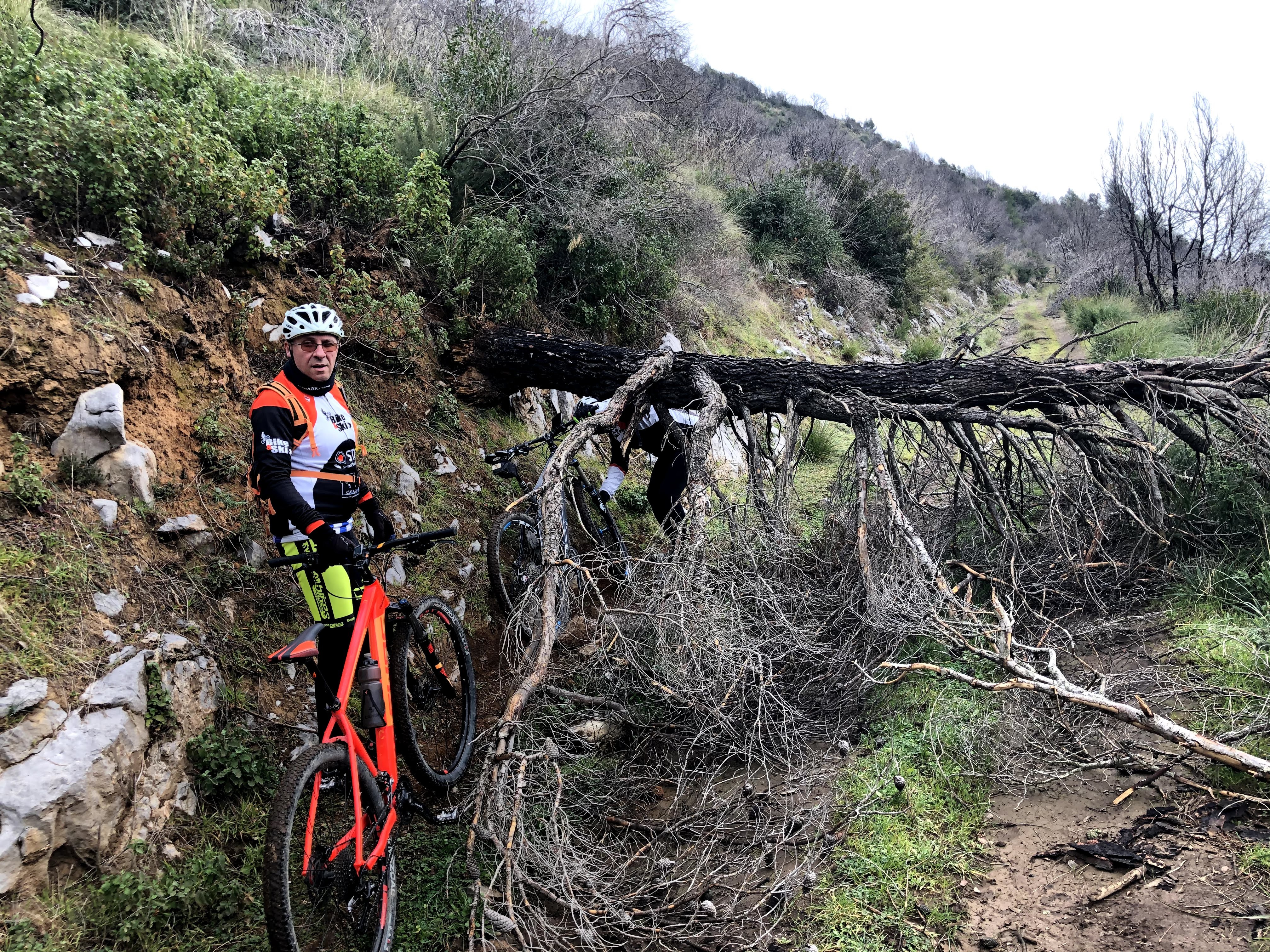 La discesa purtroppo non ci restituisce le solite emozioni: continuano infatti i tratti sbarrati dai tronchi e siamo costretti a camminare piuttosto che pedalare. Lo scenario è comunque bellissimo e ci ripaga della fatica. Arriviamo senza intoppi o cadute alle auto. Bellissimo giro, anche se un po' discontinuo.