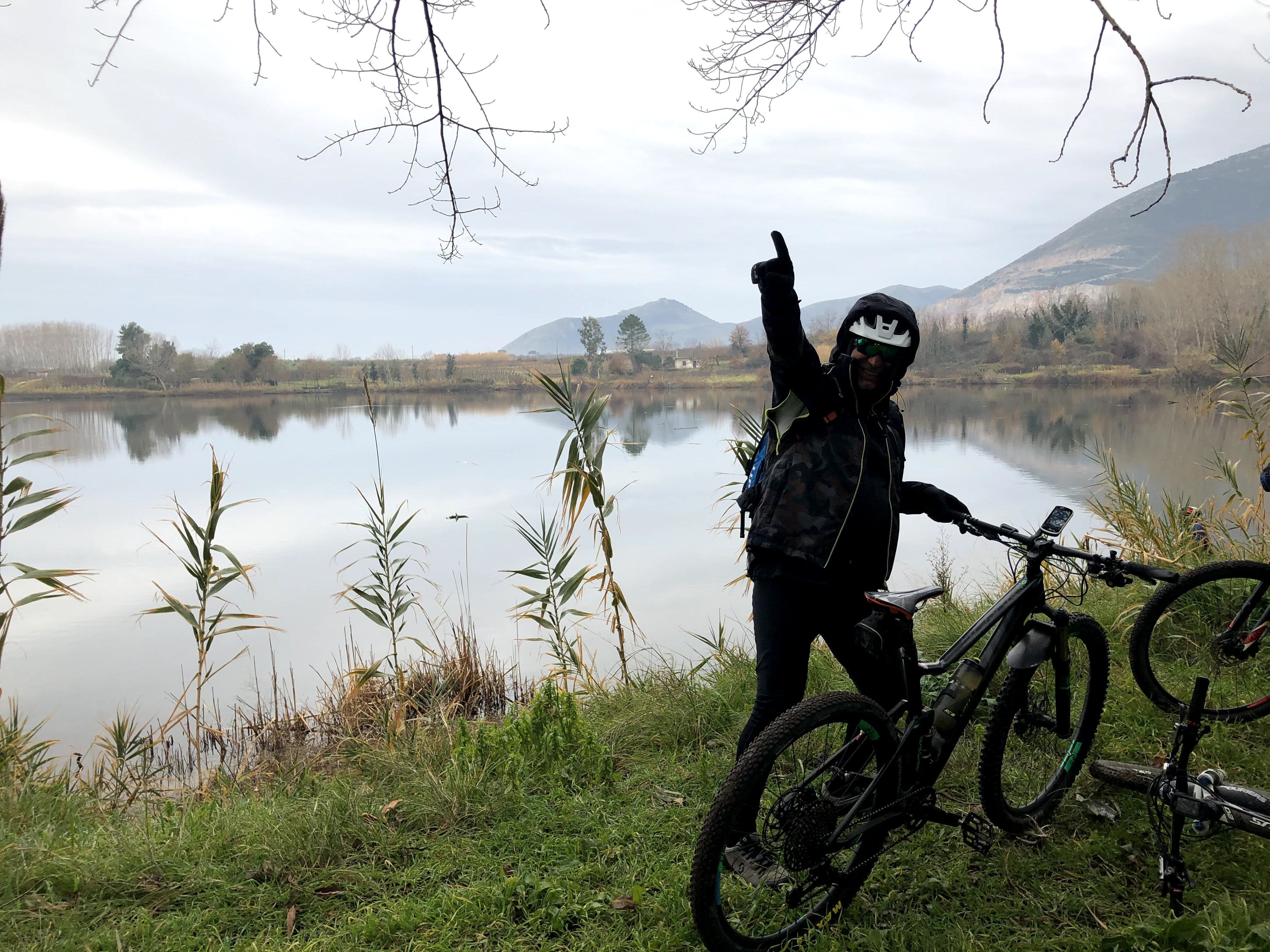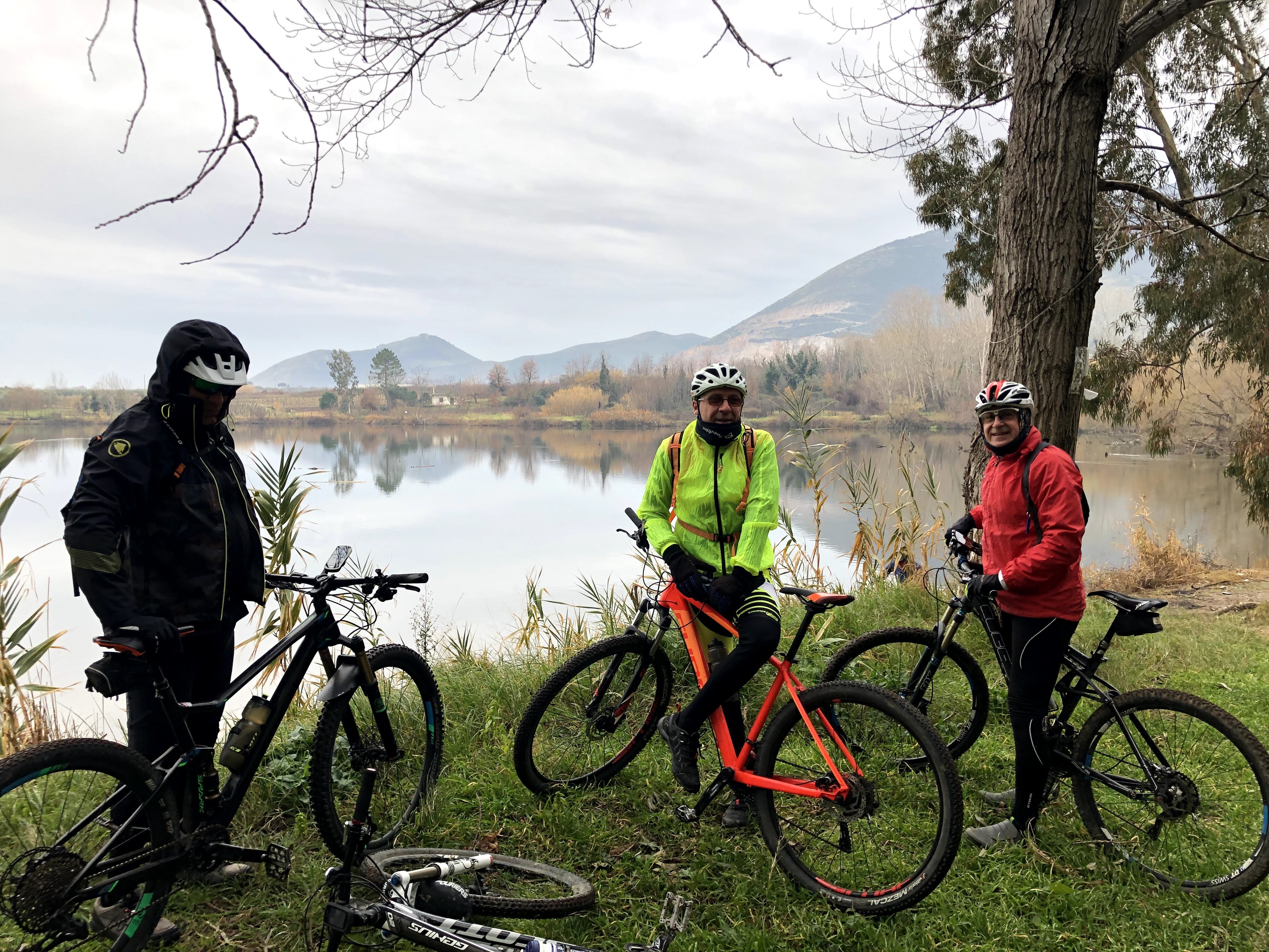 Per l'ultima domenica di un mite gennaio, decidiamo di tornare sul Monte Massico, piccola montagna sulla costa a nord di Napoli. Nel passato avevamo più volte asceso i 700m del Massico sul versante Nord, oggi invece decidiamo di esplorare per la prima volta il versate Sud. Traccia e appuntamento, come sempre definiti dal Direttore tecnico Alfonso, prevedono di partire dal piccolo specchio d'acqua del lago di Falciano del Massico. Nicola e Mario arrivano con i consueti 10 minuti di anticipo all'appuntamento e, nonostante le precisissime istruzioni di Alfonso, decidono di cambiare il punto di partenza, scegliendo un ridente parcheggio ai piedi della montagna. Generoso, Raimondo ed Alfonso li raggiungono insieme alle 8,30. Si decide comunque di tornare indietro in bici per ammirare il laghetto. Tralasciamo in questo racconto i commenti sul lago di Raimondo, evidentemente non sensibile alla bellezza bucolica di questa riserva naturalistica.