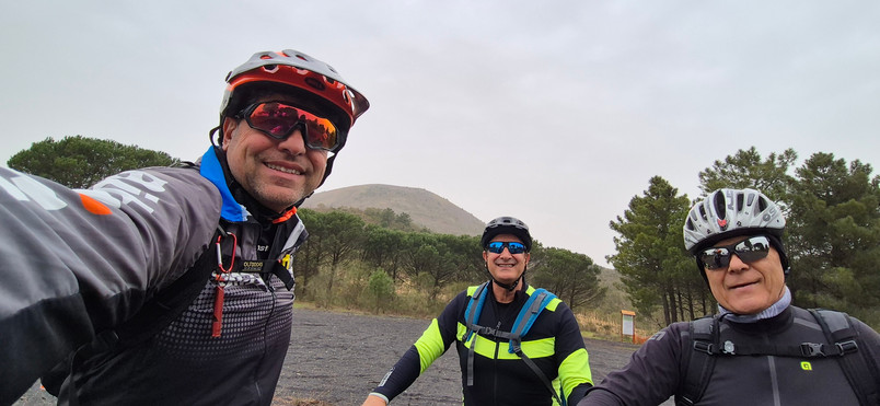 Finalmente, sono quasi le 9, i 3 bikers di oggi sono pronti a partire. L'ascesa da Ottaviano prevede subito terrificanti 2 km di salita al 10%, prima su asfalto e poi su pietrisco lavico. Mario ed Alfonso fanno ricorso ai watt del loro Bosch, mentre Francesco da subito fondo a quasi tutte le sue energie, senza però mai scendere o fermarsi.
