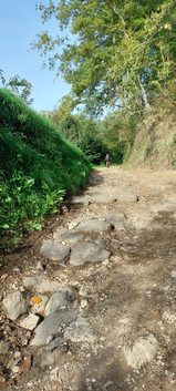 Con gli zaini pieni da esplodere, riprendiamo la via del ritorno. Usciti dal bosco però un ultimo tratto è degno di nota. Percorriamo un chilometro lungo un'antica strada romana. veramente suggestiva. Siamo su un tratto dell'antichissima strada Adrianea. Tale strada, risalente al 120 d.c. partiva dal porto di Minturnaee collegava città importantissime del mondo Romano: Suessa, Teanum Sidicinum, Alifae, Telesia per poi collegarsi con Malaventum.