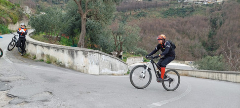 Tutti in sella e si riparte. La strada è sempre in salita, con pendenze sempre forti e quasi disumane. Percorriamo questo taglio per circa 3km e le poche energie residue sono quasi del tutto prosciugate. Nell'ultimo strappo sia Raimondo che Alfonso scendono e trascinano la bici.