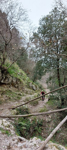 Dopo la sosta al castello, vista la stanchezza accumulata durante la scalata e l'orario, sono già le 11:30, decidiamo di accorciare il giro e non raggiungere il fontanile. Mario e Alfonso, consultate le loro mappe, trovano una strada che taglia e che ci dovrebbe riportare sulla traccia nella seconda parte, dove ci aspettano i boschi ed una lunga discesa fino ad Angri.