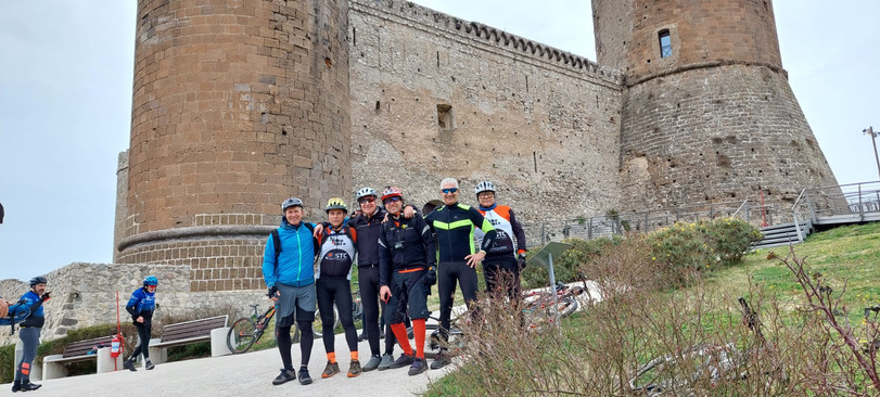 Dopo avere apostrofato in malo modo il Direttore, reo di aver scelto le strade più ripide, alla spicciolata tutti i bikers arrivano al castello poco prima delle 11. Il primo a giungere al castello è l'Atomico Francesco, oggi particolarmente in forma, seguito da Ironman Roberto e King Andrea. Peppe con tutta calma pedala, cercando di convincere Alfonso che era più opportuno salire da Gragnano. L'idea di Peppe/Raimondo come al solito non era malvagia, il problema che questi preziosi input arrivano sempre quando siamo già in sella e non durante la progettazione del giro.