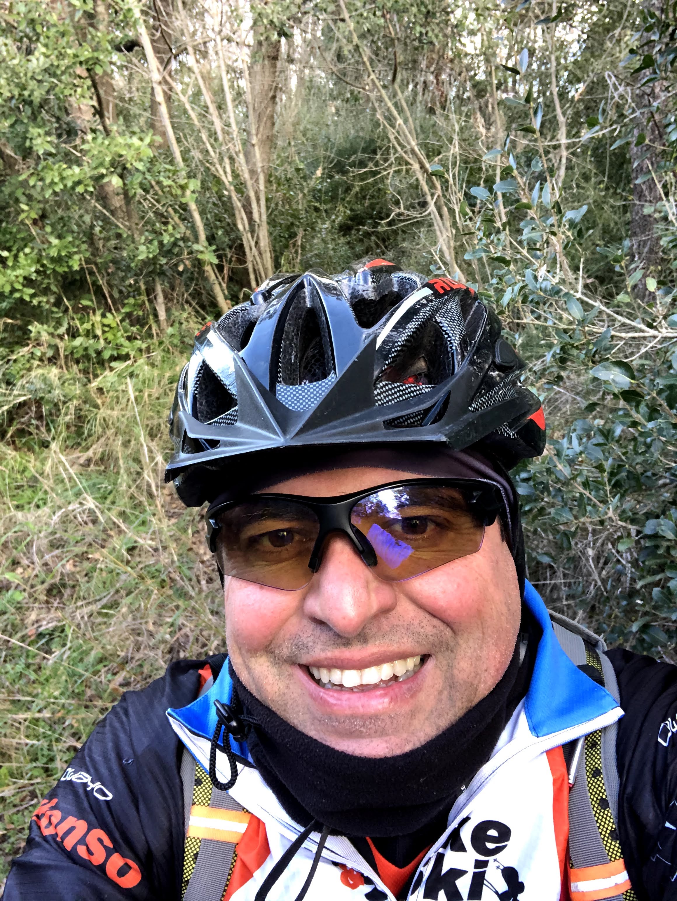 A metà del primo tratto giungiamo sull'asfalto e subito Raimondo, basandosi sulle suo ottimo e oramai famoso senso dell'orientamento indica la direzione da prendere. Alfonso, ma come questa volta un po' esitante, lo lascia fare. Ma dopo pochi metri capisce che siamo nella direzione sbagliata: riprese le redini del gruppo, dopo aver incrociato i dati del suo Garmin con la App di Mario (unico oltre Alfonso che sistematicamente scarica la traccia da seguire), identifica il sentiero corretto. Riprendiamo quindi la strada che dopo altri 2 km di sterrato ci porta su un tratto di asfalto in salita.